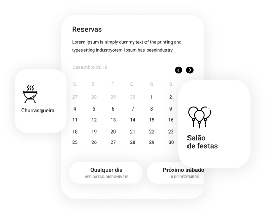 Com poucos toques no app, você garante a reserva do salão de festas, churrasqueira, quadras e muito mais. Sem burocracia, sem papelada, tudo de forma rápida e organizada